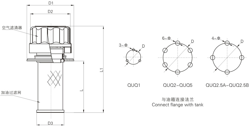 QUQ系列液压空气滤清器的设计参考了国外先进技术资料,并在批量生产EF系列液压空气滤清器的基础上,进一步地改进后使空气滤清器打到了标准化,系列化的目的。经使用表明,本产品具有体积轻巧,结构合理,外型设计美观新颖,过滤性能稳定,安装使用方便等优点,各项性能指标均达到了国外同类产品技术要求,连接尺寸与国外产品一致,并符合“液压空气滤清器国家标准和产品系列设计”技术要求,深得广大用户青睐。