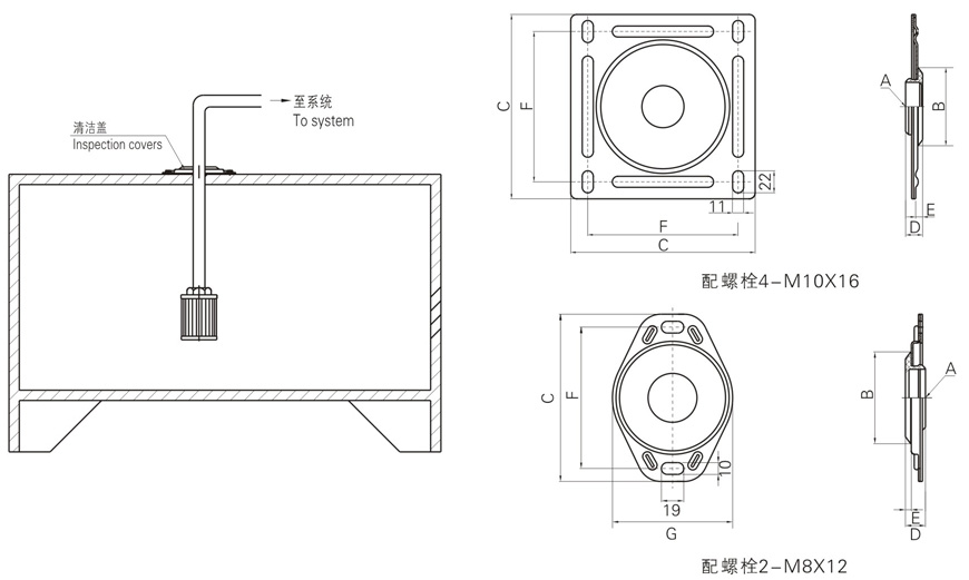 | ΦB | C | D | E | F | G | 最大清洁孔径ΦH | |||