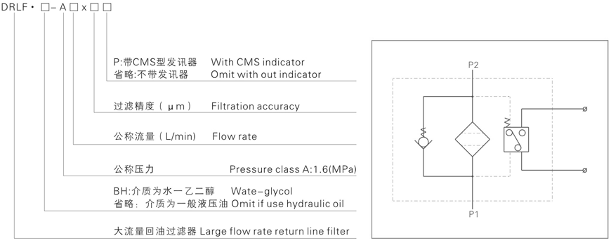 DRLF系列大流量回油过滤器安装在液压系统回油管路处,用来滤除油液中诸元件磨损的金属粉末及橡胶质等,使流回油箱中的油液保持清洁。